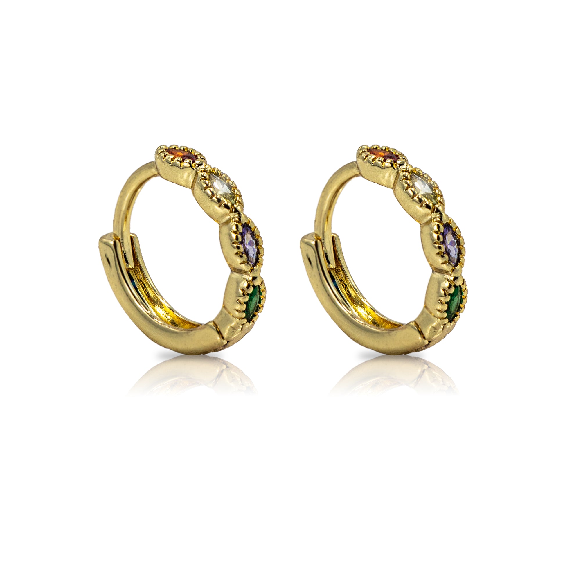 Experience ultimate comfort and style with Rainbow Huggies. These earrings feature a beautiful rainbow design, making them the perfect accessory for any outfit. Made with 24K Gold Filled materials, these huggies are durable and will stay securely in your ears. Add a pop of color to your wardrobe with Rainbow Huggies.